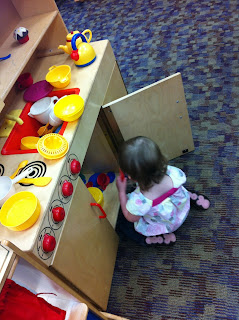After some Sesame Street, we ate some breakfast and put ourselves together and made our way to the library - ours is just down the street and has a great kids/toddler section with a toy kitchen and puppets and blocks for the kids to play with.